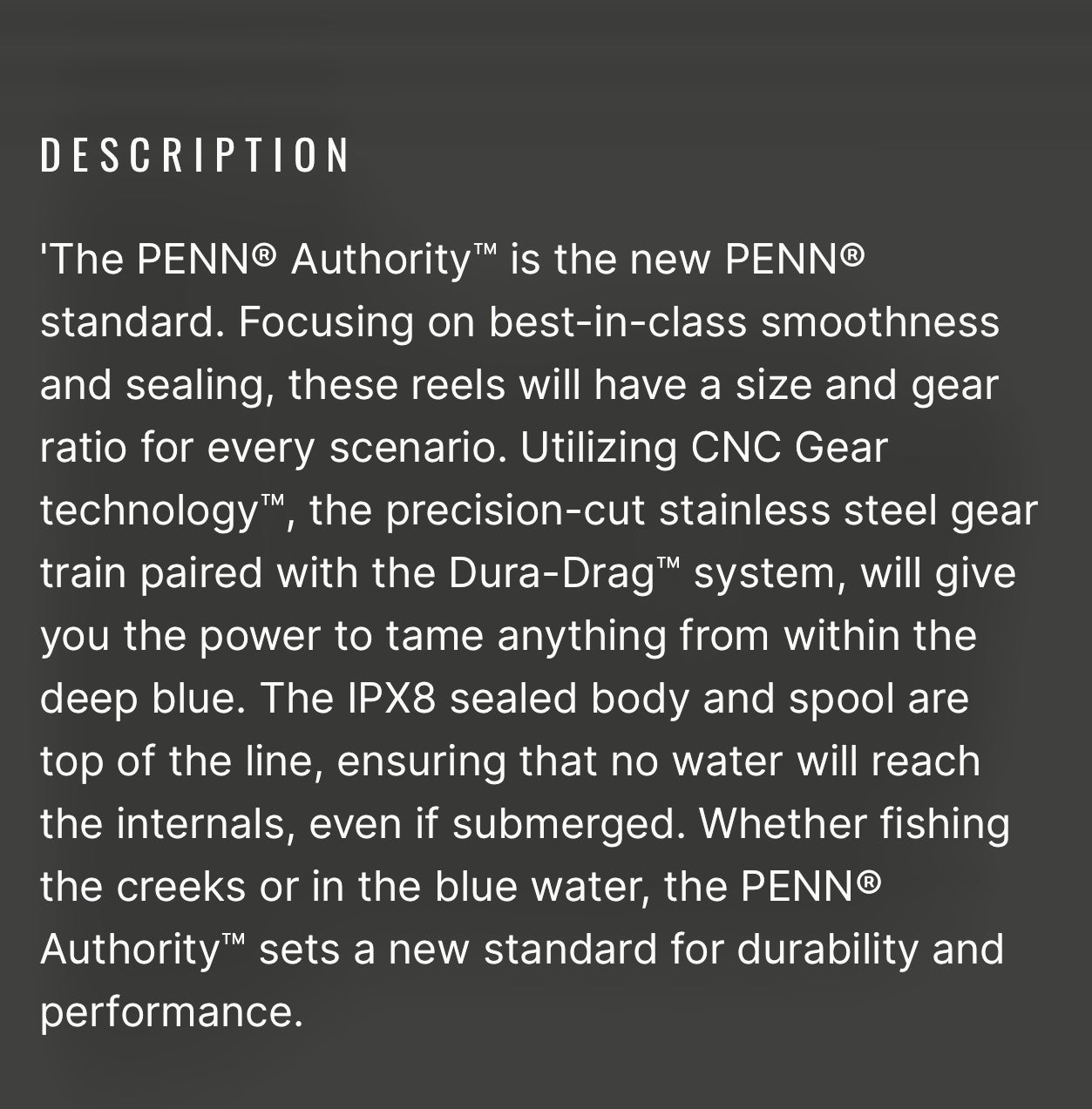 Penn Authority Reels sealed drag and body , cnc gear technology, stainless gear